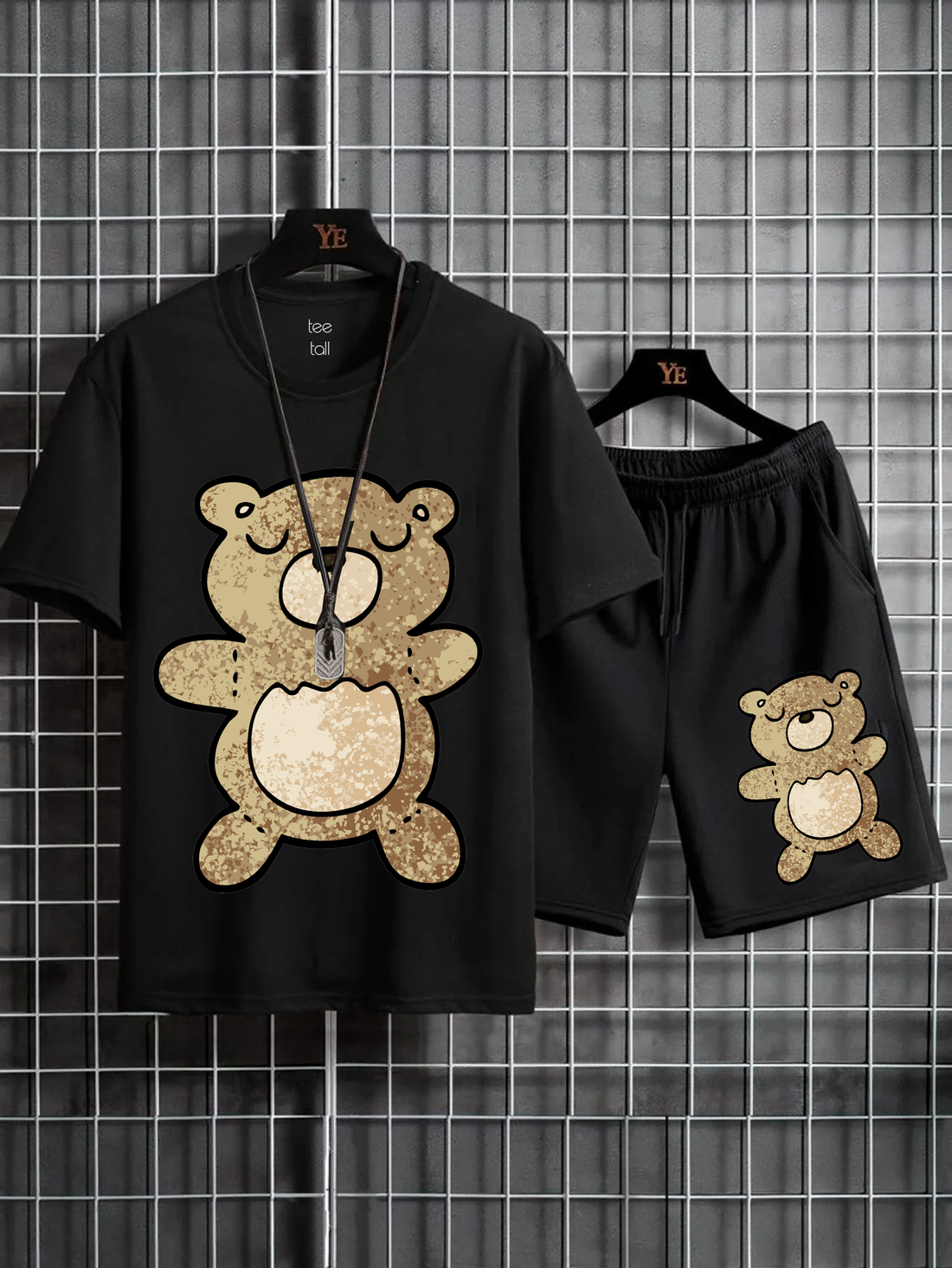 Mens Summer Shorts + T-Shirt Set - TTMSS99 - Black Black