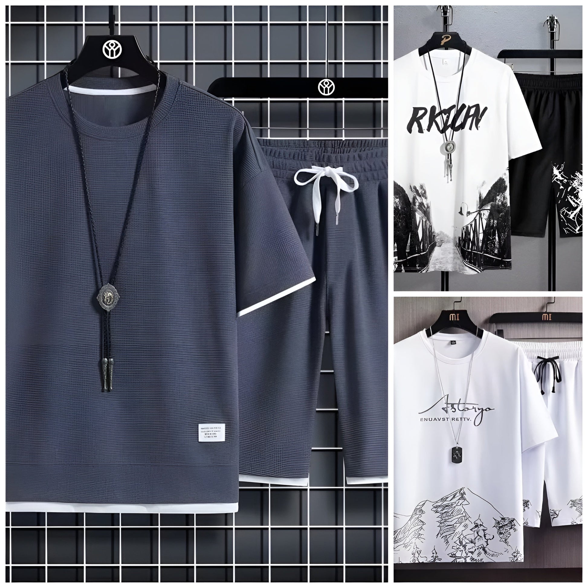 Pack of 3 Men's Summer Sports Suit Tracksuit - Short Sleeves T-Shirts 6527