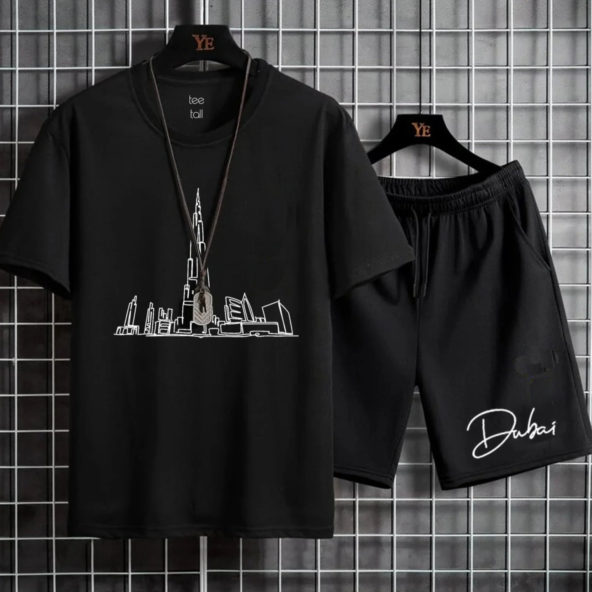Mens Summer Shorts + T-Shirt Set - TTMSS83 - Black Black